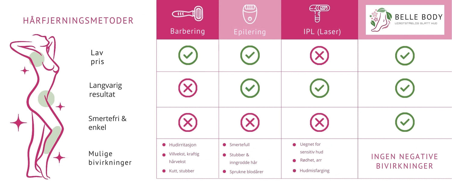 Belle Body vs. tradisjonelle hårfjerningsmetoder