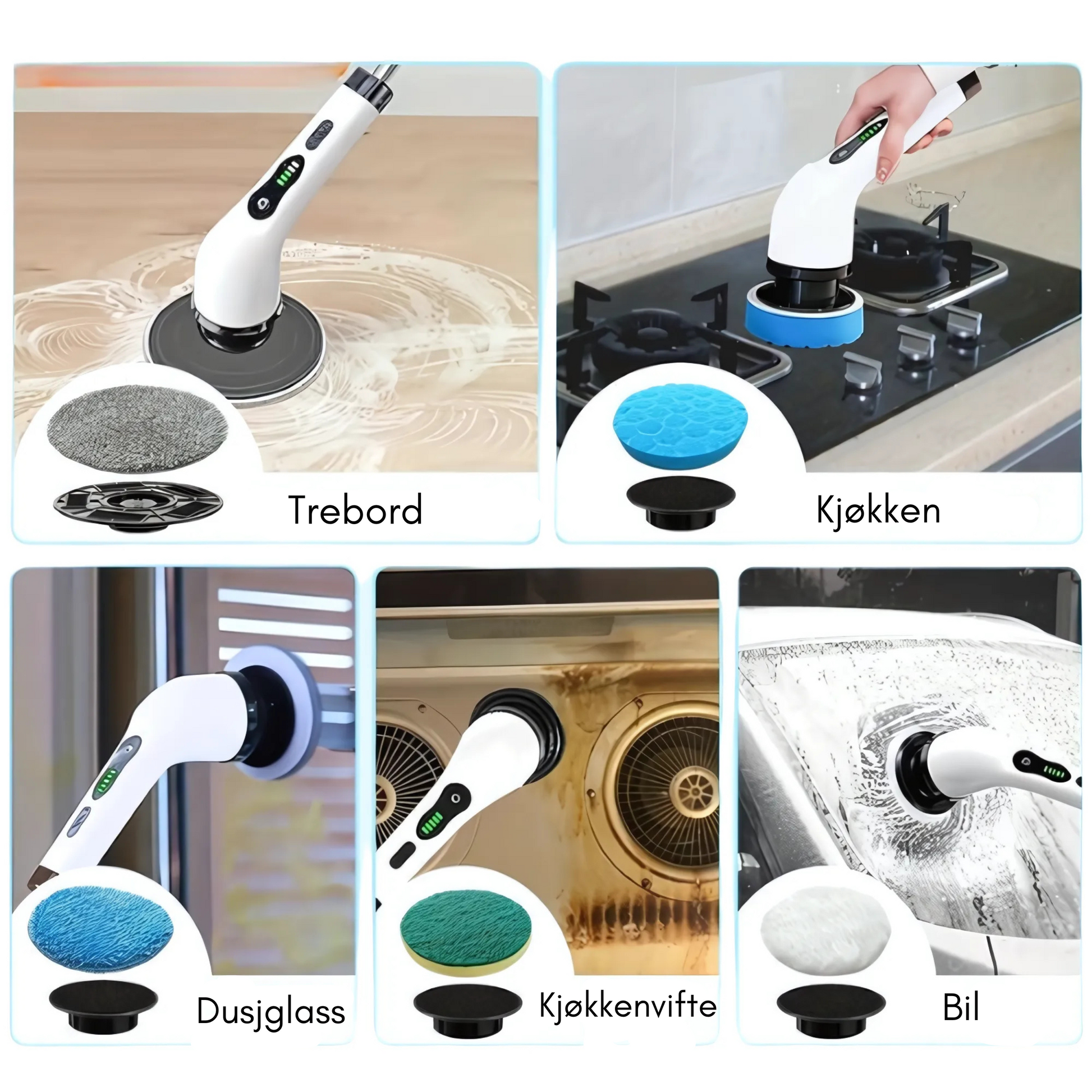 ✔ 9 utskiftbare børstehoder – for gulv, bad, kjøkken og bil