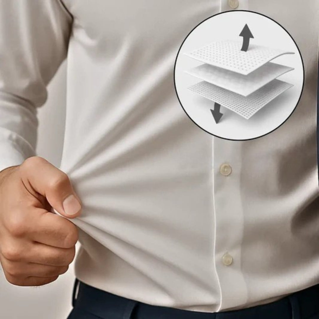 Denne innovasjonen gjør at skjortene våre forblir rynkefrie, pustende og elastiske, noe som gir deg full bevegelsesfrihet uten å gå på kompromiss med stilen.
