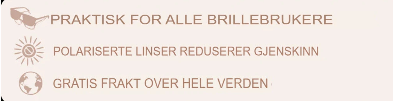 Våre solbriller passer til alle brillerammer, så du kan fortsette å bruke favorittbrillene dine.