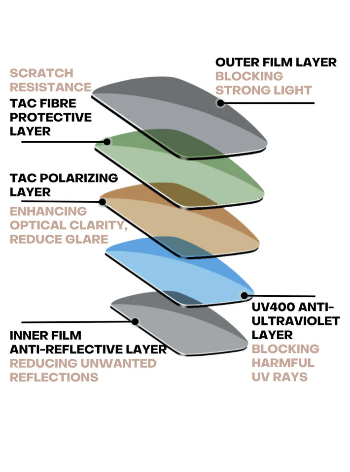 Med polariserte linser som reduserer blending og gir 100% UV-beskyttelse, kan du bruke dem trygt – vi sørger for at øynene dine alltid er beskyttet.