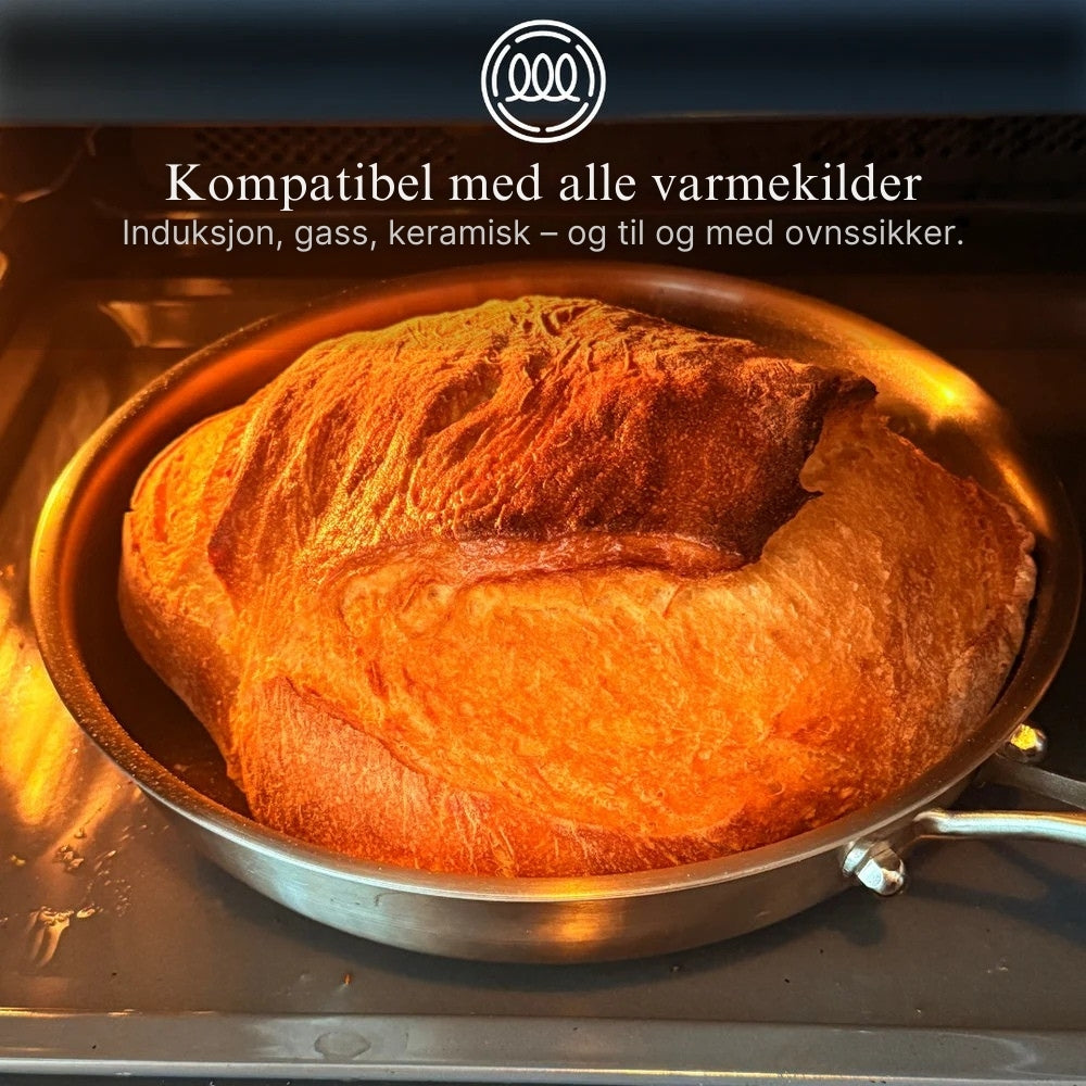 🔥 Bygget for å tåle opptil 548°C / 1000°F, vil pannen vår ikke flasse, sprekke eller brytes ned over tid. Bare ren matlaging uten kompromisser.